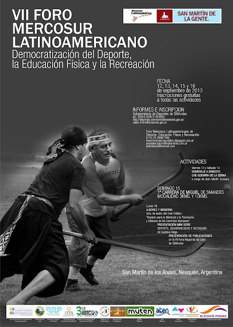 Desde el 12 al 16 de setiembre, se realizará en la ciudad de San Martín de los Andes el VII Foro Mercosur Latinoamericano «Democratización del Deporte, la Educación Física y la Recreación, que enmarca el IV Foro “ La Carrera de Miguel “, “La Cultura Corporal por la Memoria, la Verdad y la Justicia “y la I Carrera de Miguel de SMAndes. Este importante evento es organizado por el Foro Mercosur Latinoamerica en Movimiento y la municipalidad de San Martín de los Andes, además de contar con el auspicio de organizaciones gubernamentales, académicas, educativas sociales y sindicales. El mismo día de la apertura está previsto el “Homenaje por los Compañeros Caídos en la Noche de los Lápices » con la obra teatral “Ajedrez y Memoria”, a cargo del Ministerio de Educación de la Nación y del Ente Publico “ Espacio para la Memoria y para la Promoción y la Defensa de los Derechos Humanos “. |